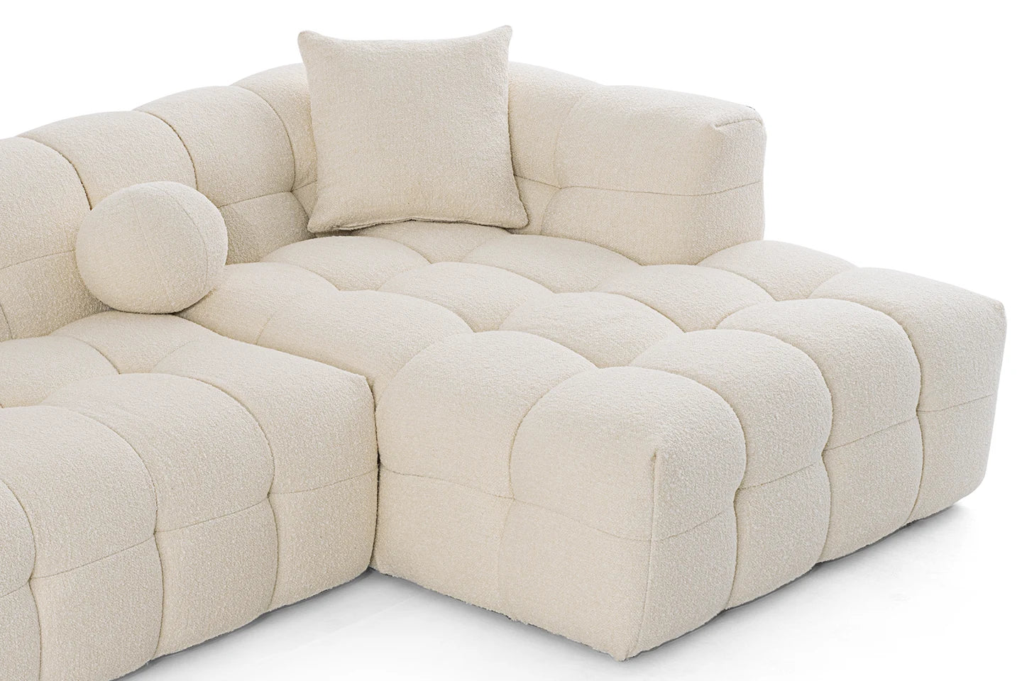 Expertly crafted, the Amsterdam Bouclé Sofa is generously upholstered in sumptuous bouclé fabric, renowned for its rich texture and cozy feel. This "sectional sofa with chaise" offers plush, cushioned seating that provides exceptional comfort - a perfect place to unwind after a long day or enjoy quality time with family and friends.