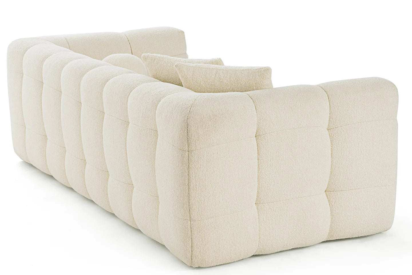 The Amsterdam Bouclé Sofa is not only incredibly soft and comfortable, but also exudes a refined sophistication that seamlessly blends with various interior styles and color schemes. Available in a carefully curated selection of colors, this sofa is designed to suit a wide range of tastes and preferences, ensuring it will become an integral part of your home décor.