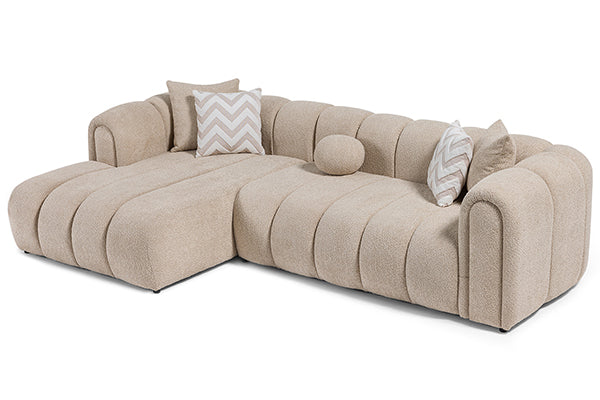 Embracing the London L-Sectional Sofa is to indulge in a comfort that transcends the ordinary. Upholstered in a fabric that tantalizes the senses, both visually and tactilely, it is chosen for its enduring quality and luxurious texture. The fine weave of the fabric provides an inviting touch that beckons you to unwind in its embrace. This material does not merely add to the sofa's comfort; it amplifies its sophisticated aesthetic, promising a haven of tranquility and a touch of warmth to your home.