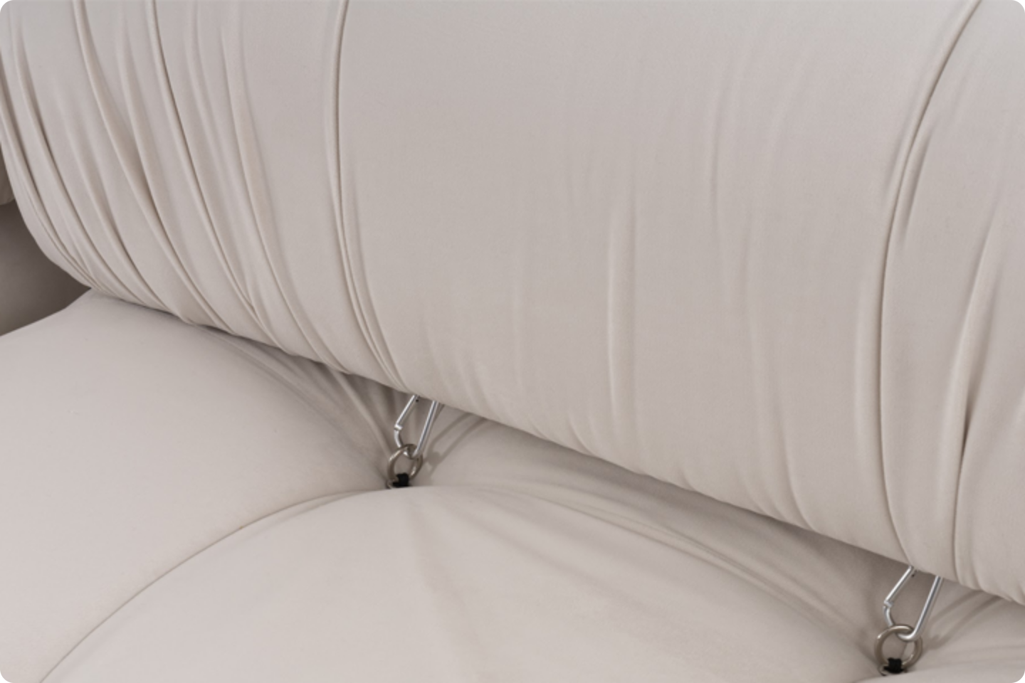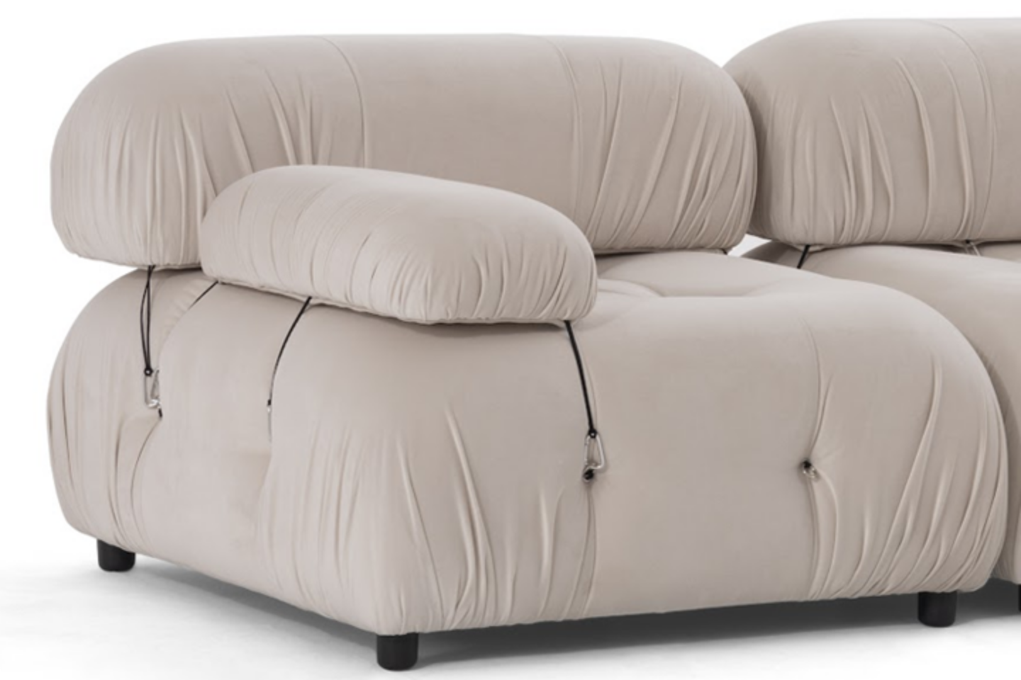 The ingenious design of the Sydney Modular Sofa features backs and armrests equipped with rings and carabiners, allowing you to effortlessly connect, rearrange, and tailor the configuration to your specific needs. Whether you're looking to create a cozy corner for relaxation, a spacious seating area for entertaining, or anything in between, the Sydney Modular Sofa adapts to your desires with ease.